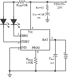 TP4083 的其他特点包括电源欠压闭锁、自动再充电和两个用于指示充电结束和输入电压接入的状态引脚。